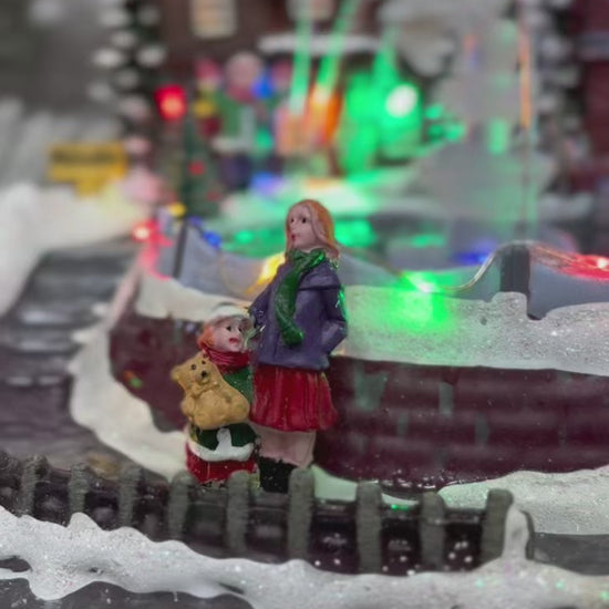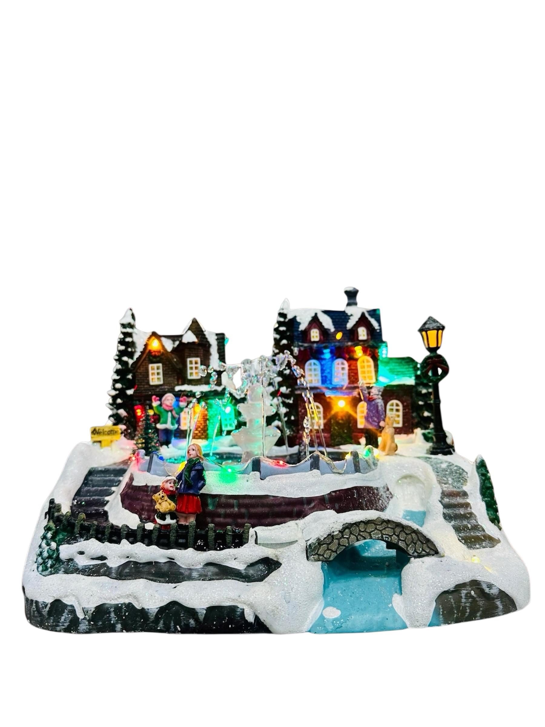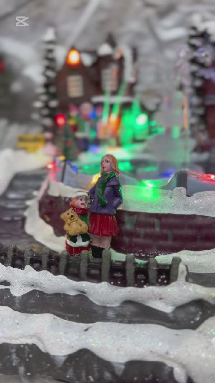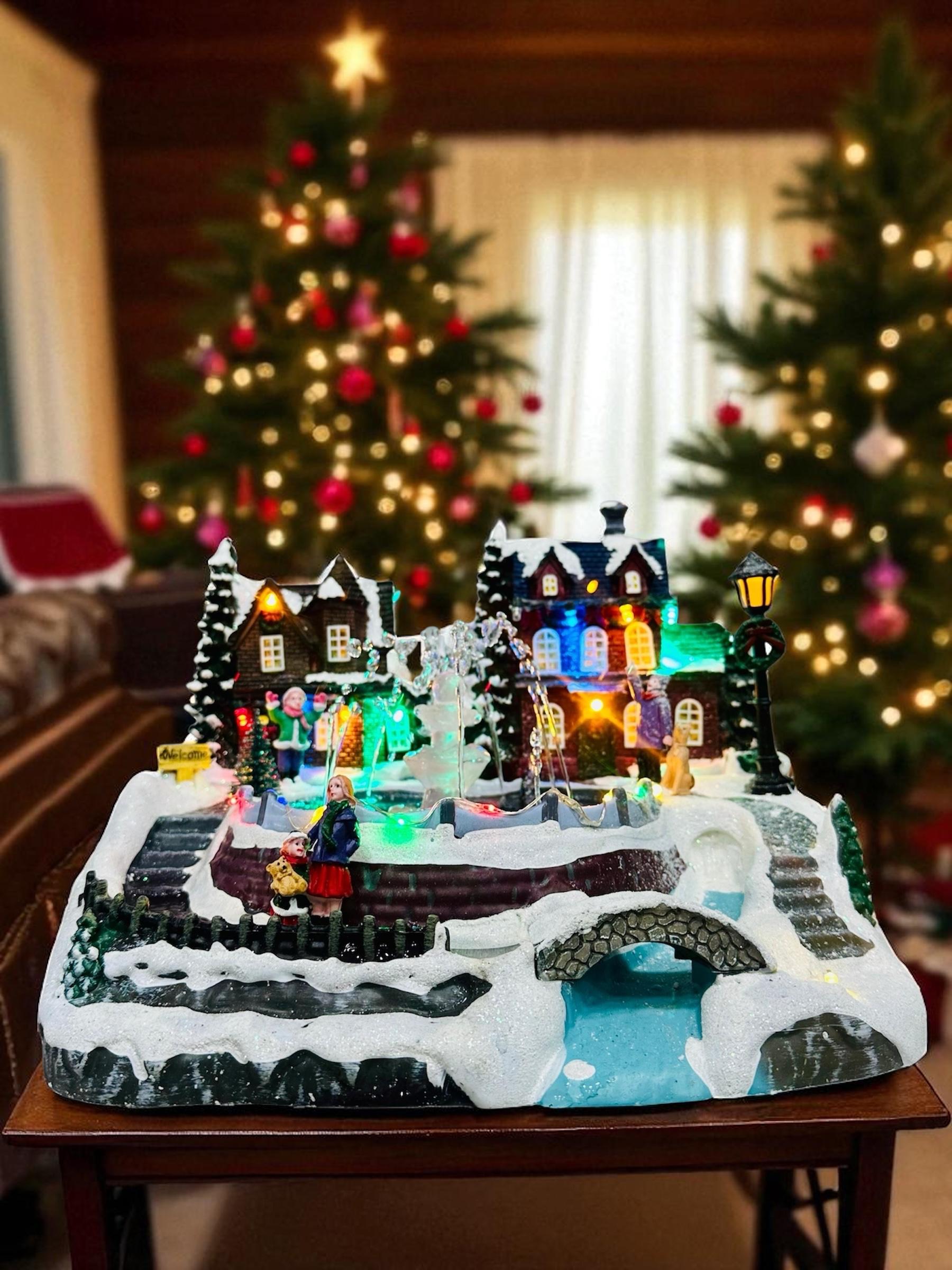 • ❄️ Diseño detallado con casas, puente y figuras, creando una escena navideña mágica.