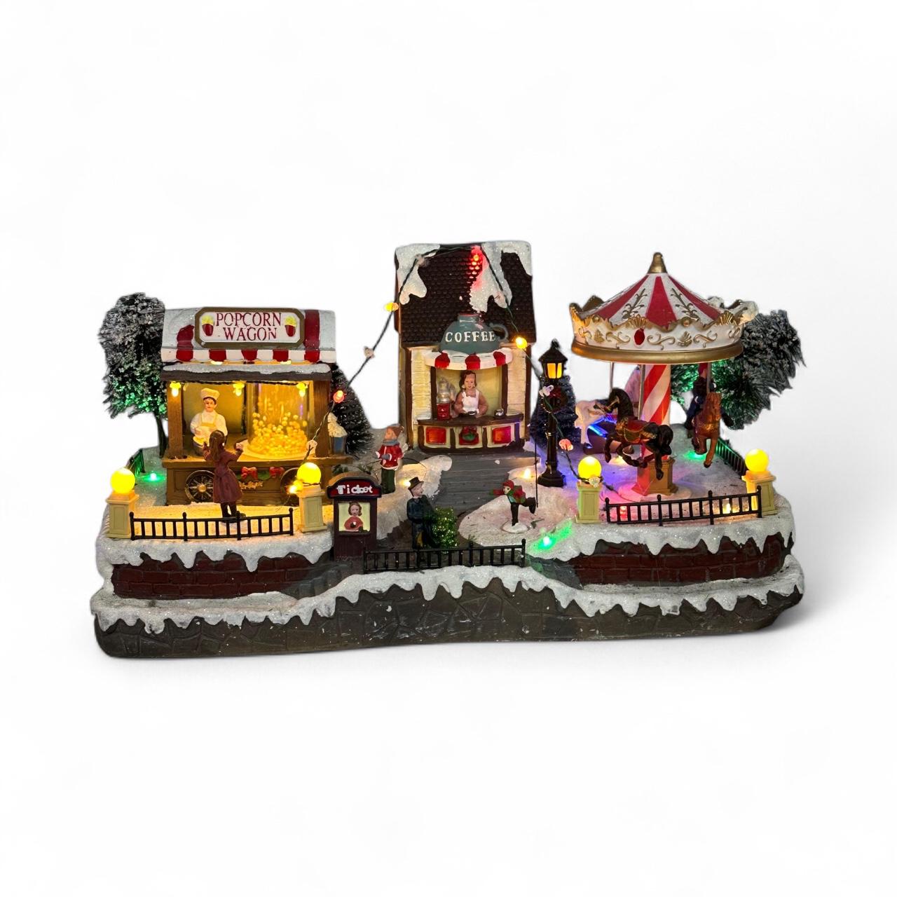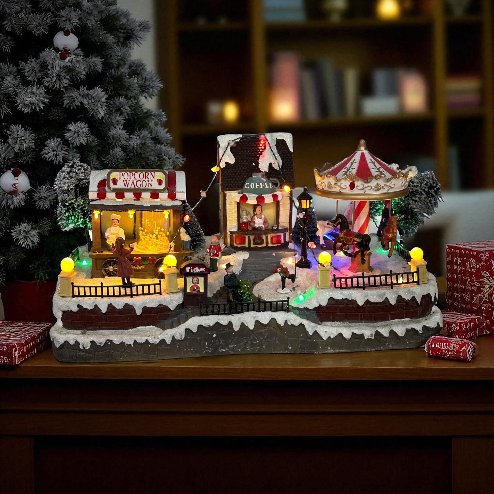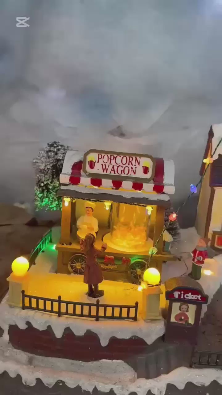 • 🍿 Puesto de palomitas y stand de café que recrean un auténtico mercado navideño.