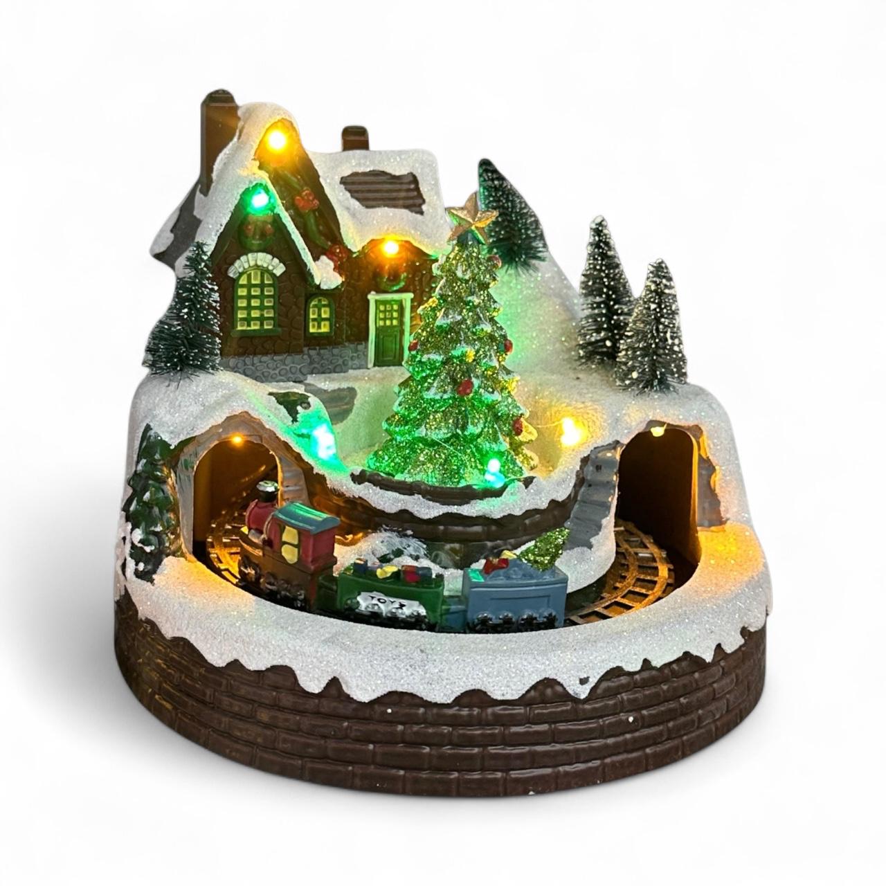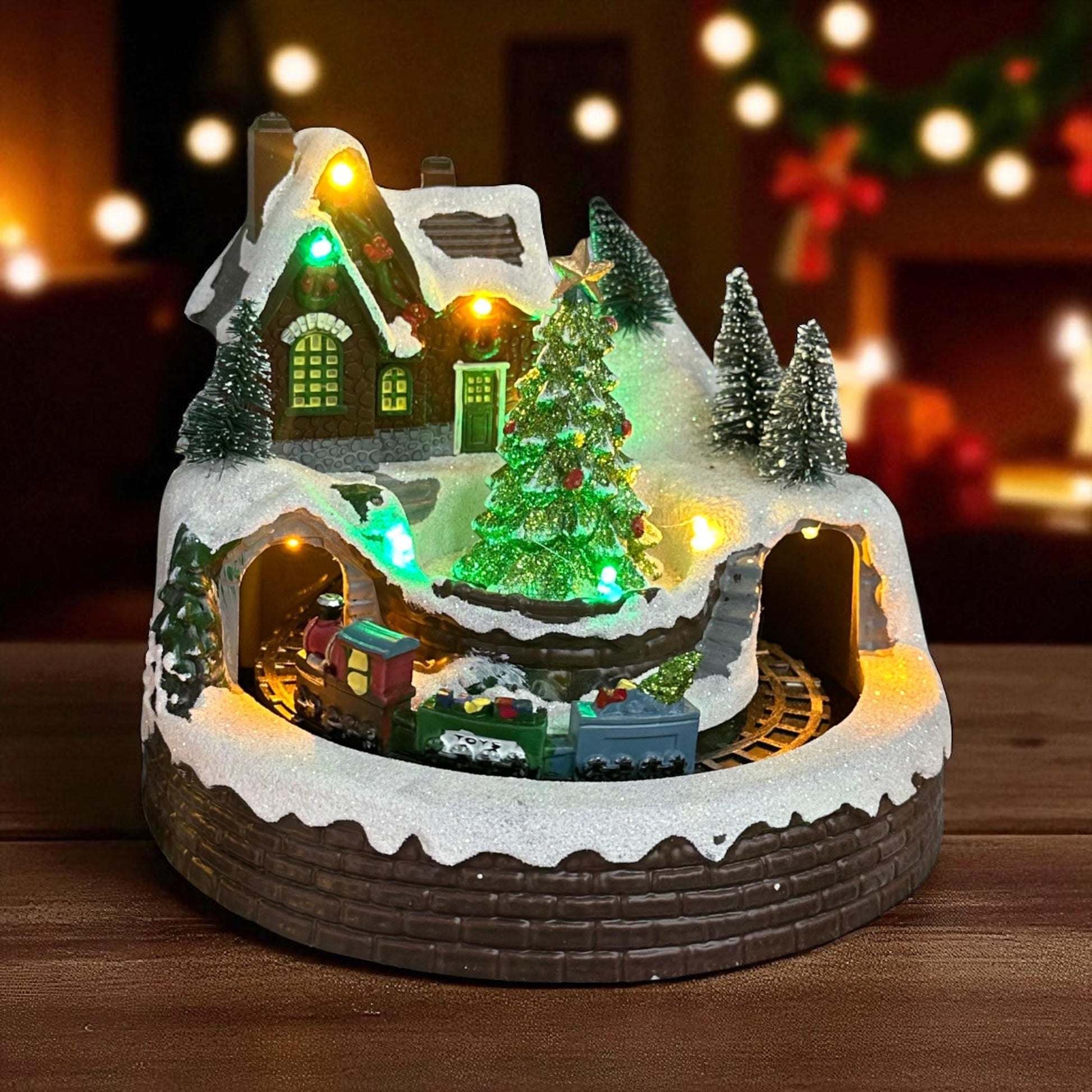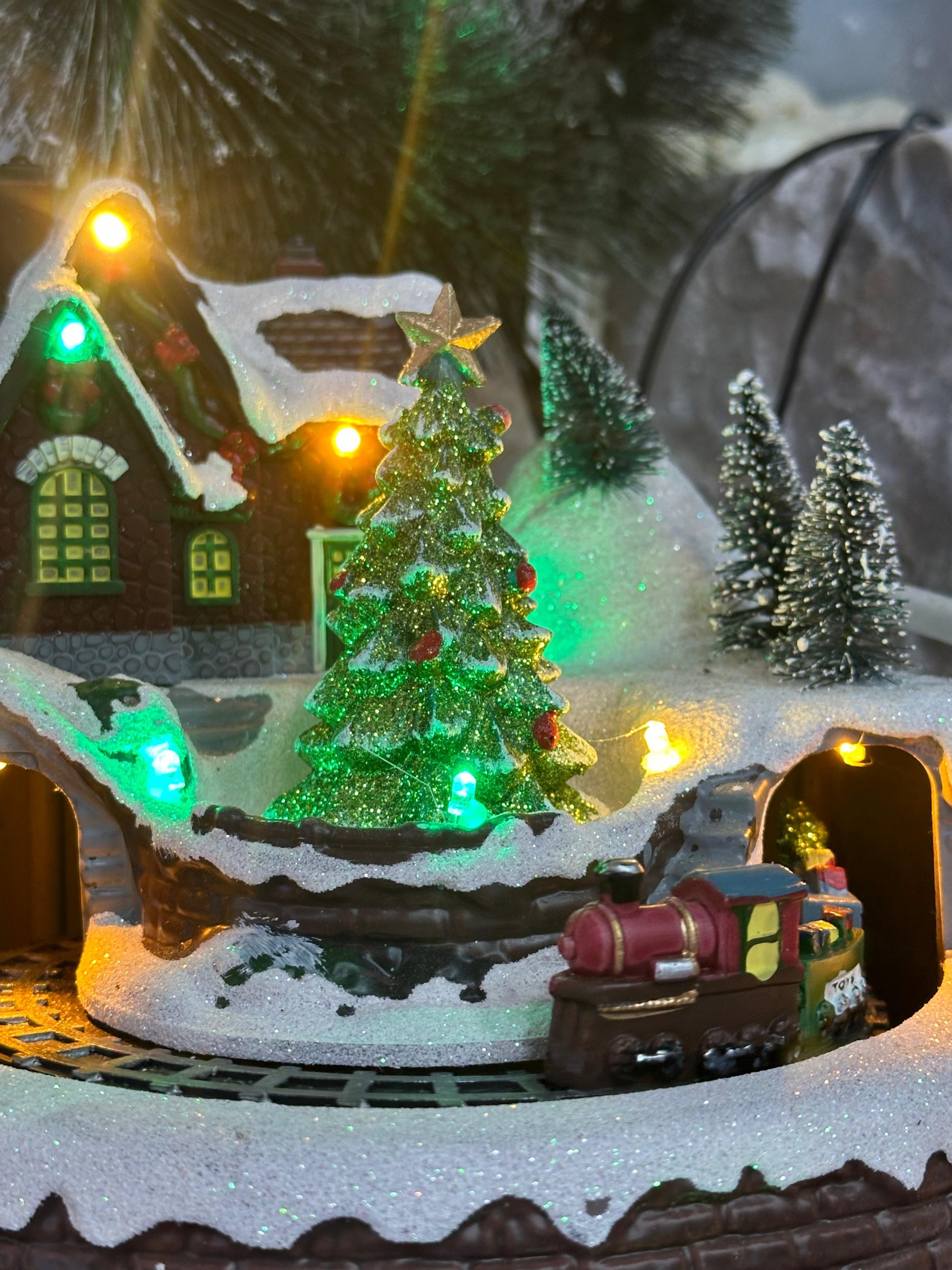 🎄 Villa Navideña con Tren en Movimiento y Luces LED 🎶✨